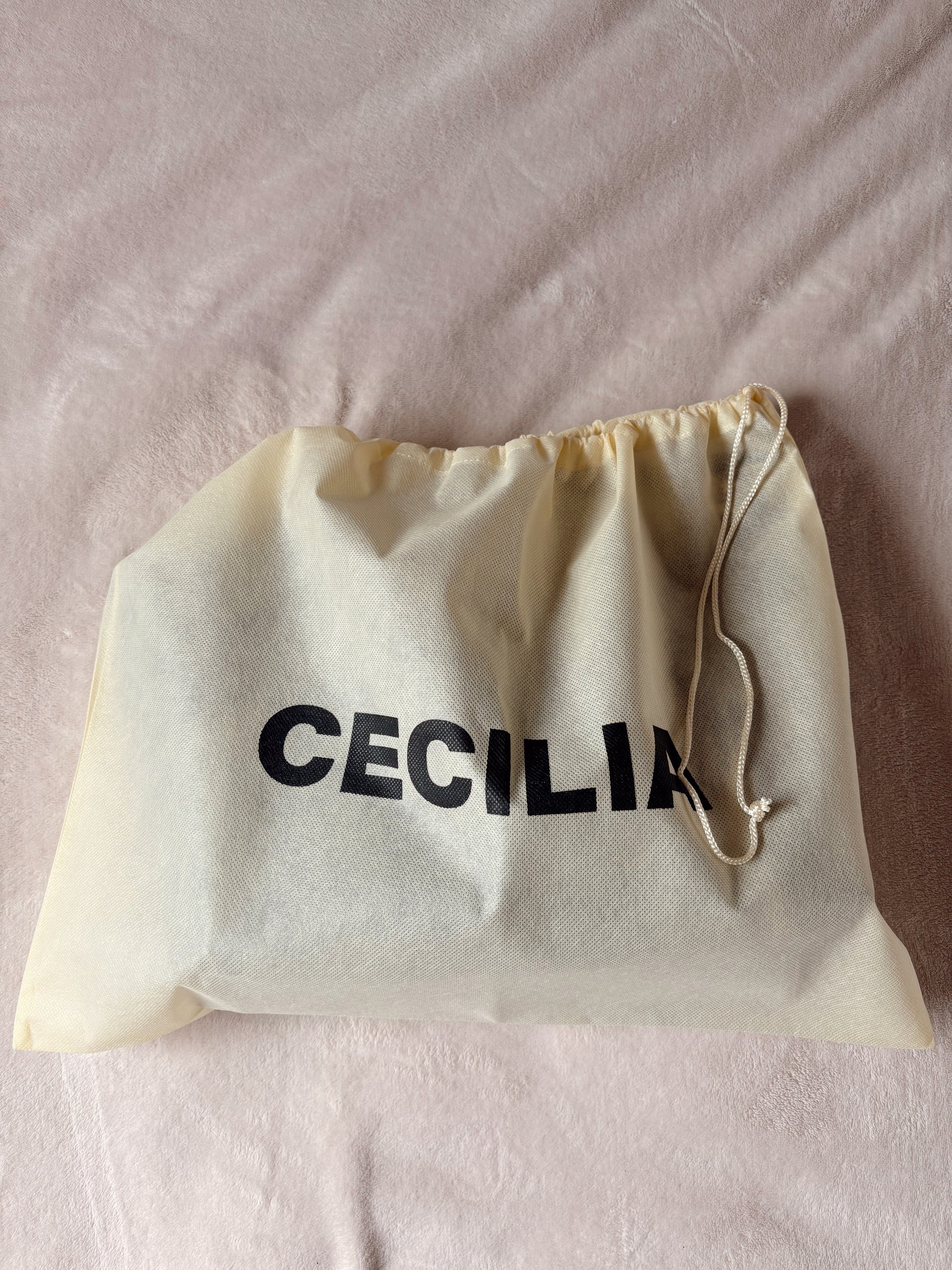 Este cubrepolvo en tela kambre color marfil es perfecto para proteger bolsos medianos, carteras y zapatos del polvo y el desgaste diario.